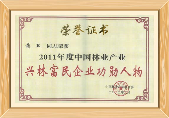 11月,董事长蒋卫被中国林业局授予“林业产业突出贡献特别奖”。