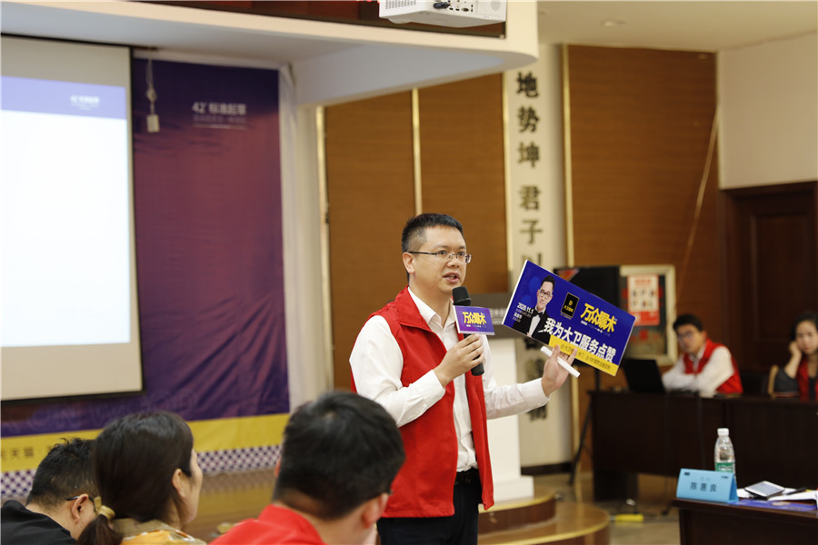 市场部总监陈乐新分享:做重要的事情,士气、心态很重要,要勇于尝试,我们的初衷是通过自身的努力真正达到万众瞩目,口号很简单,但是要付出很大的努力,这是一年活动中最大的一次,店面布置很重要!保养服务要做起来,两品一促一服务是万众瞩木的核心,需要在座的每一位齐心协力才能做到。我们的目标:保2000冲2500!当下公司的信心比以往的22年都要强,在稳定的基础上要有所突破,慢进则退!志同道合!一起把万众瞩木越做越大,做出服务感和专业感!最后希望我们的未来、往后的日子、品牌、财富都能做到蒸蒸日上!