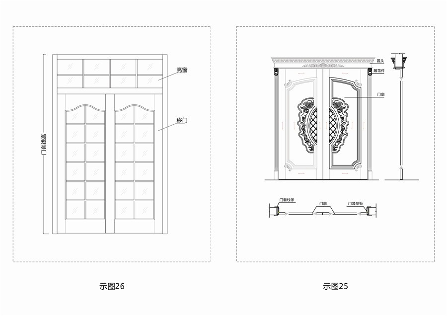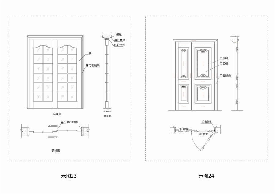 2.移门套(推拉套):用于包裹洞口并固定门扇推拉的称为推拉门框;(示图23)
