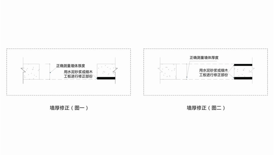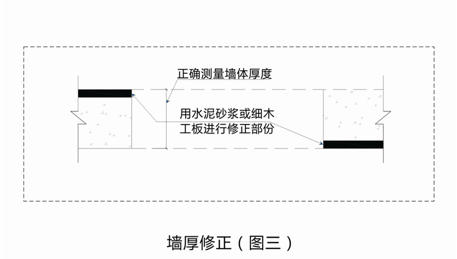 如果墙体厚度的误差超过5mm,就需要进行修正。修正图如下: